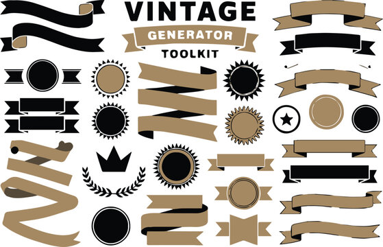 vintage vector design toolkit with ribbons badges banners ornamental elements for retro graphic projects