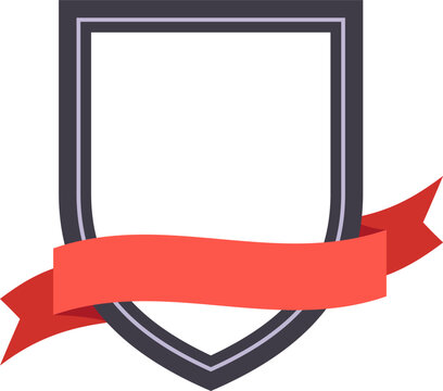 Empty shield with red ribbon banner wrapped around it, creating a template for awards, logos, or emblems, representing achievement, honor, and recognition