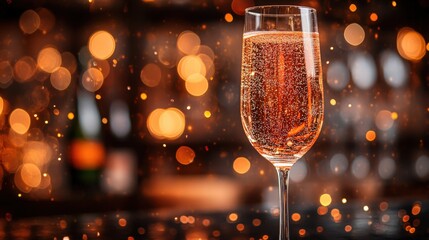 Sparkling beverage in elegant glass against a softly blurred festive background