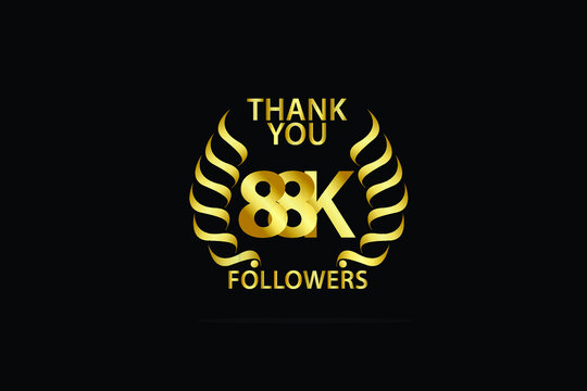 88k, 88.000 Followers, subscribers thank you dor internet, minimalist logo, jubilee Gold space vector illustration on black background - Vector