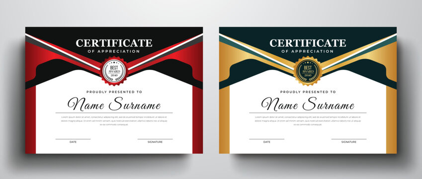 Modern and creative certificate template for multipurpose, Golden green and red black color variation elegant certificate design