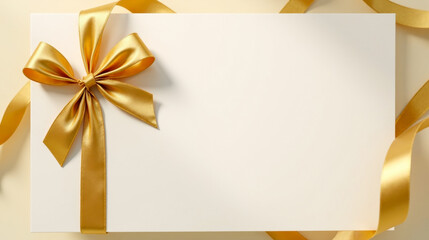 Mockup greeting card with gold ribbon bow on beige background weddings birthday celebration featuring elegant luxurious design for special occasions inviting message