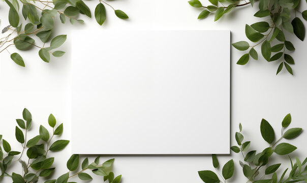 A minimalist botanical frame featuring soft watercolor leaves and subtle floral accents around the edges, set on a clean white background for an elegant and modern wedding invitation.