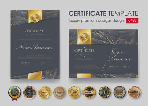 certificate template with Luxury realistic texture pattern,diploma and vector Luxury premium badges design. New Collections