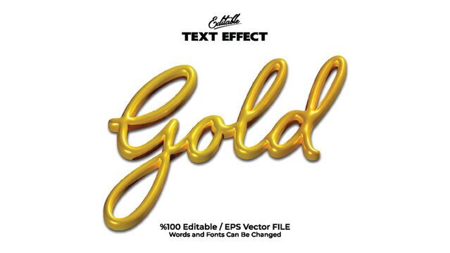 Gold text effect shiny 3d editable lettering with golden metallic style for graphic design and creative projects