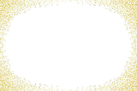 Gold glitter particles rectangle frame isolated on transparent background. Luxury gold sparkling splatter powder dust border. Festive decoration design elements. Vector illustration. PNG