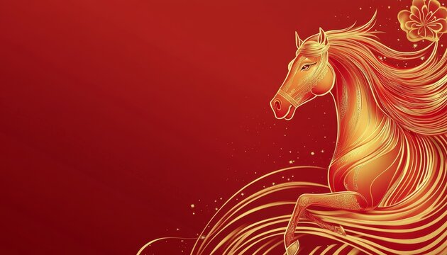 A stylized black horse head with golden accents on a white background illustration design art