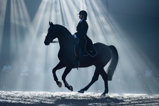 Elegant black silhouette of a powerful horse head with a flowing mane against a clean white background symbolizing strength and grace