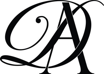 LD monogram logo signature icon. Alphabet initials serif letter l, handwriting letter d. Lettering sign. Modern deco design, fashion, beauty spa, wedding style characters elegant calligraphy.