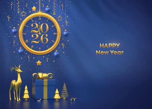 3d gold 2026 number and blue background. Happy new year 2026 greetings