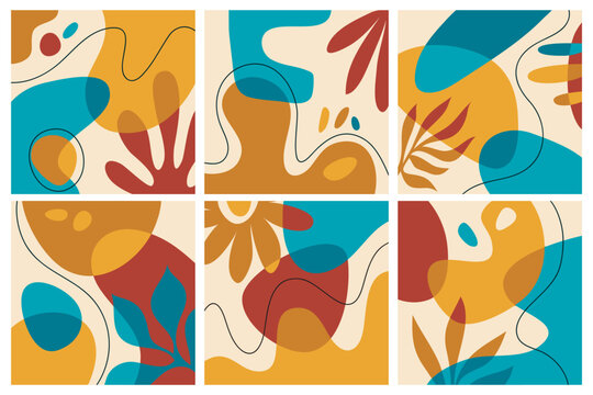 Abstract art nature background vector. Modern shape line art wallpaper. Boho foliage botanical tropical leaves and floral pattern design for home deco, wall art, social media post and story background