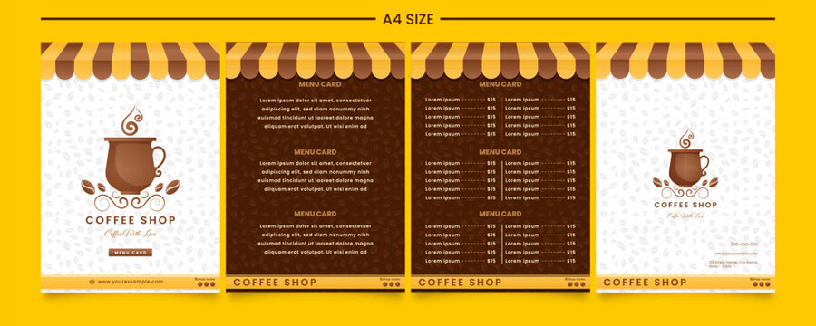 Menu Card for Coffee Shop in the theme Color of Yellow and Brown.