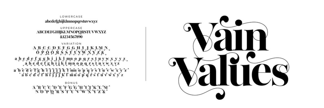 Espresso Modern Elegant Glamour Font Uppercase Lowercase Number and Symbol. Lettering Fashion Designs. Typography condensed serif fonts for design