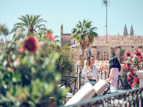 Romantic couple kiss on balcony at sunset with champagne celebrating love and special moment in elegant evening with city lights glowing warmly