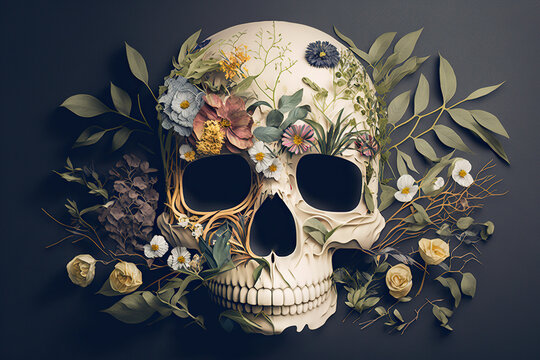 elegant portrait of a skull made by flower, created with Generative AI technology