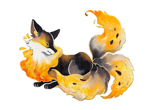 Mysterious fire elemental woman, fire and smoke. Fire Elemental. Illustration