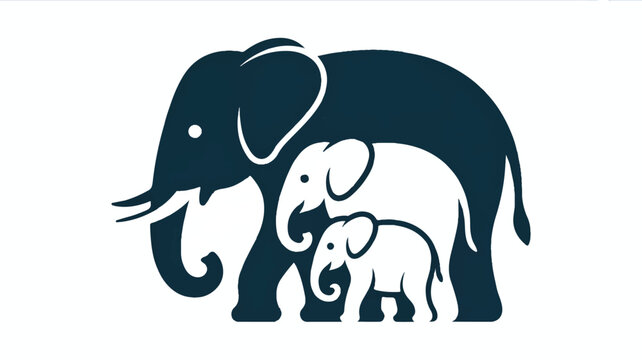 A minimalist vector illustration of an elephant family silhouette in dark teal blue against a white background