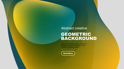 Abstract shapes overlap, creating vibrant gradient background. Text promotes further exploration, simple design.