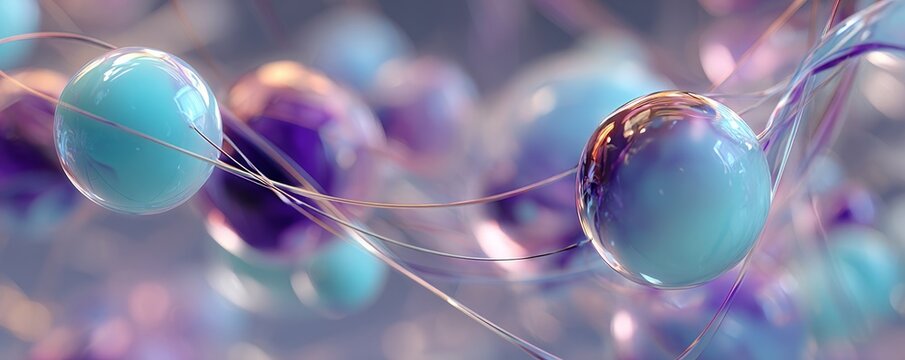Modern 3D Render of Abstract Spheres with Delicate Strings for Innovative Design