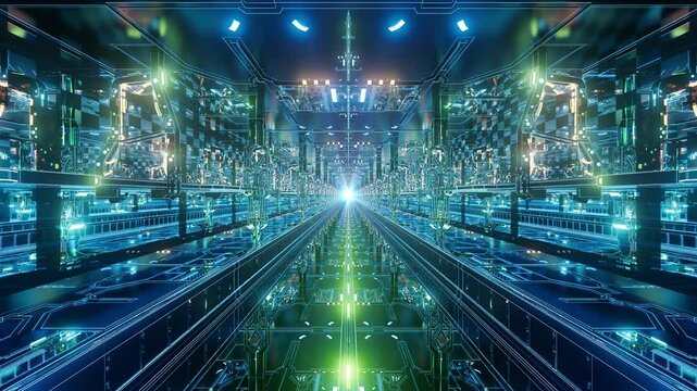 A sci-fi style tunnel with mechanical elevators and bright neon lights moving in a seamless loop.