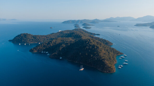inhabitant wild Island near Gocek with yachts passing by