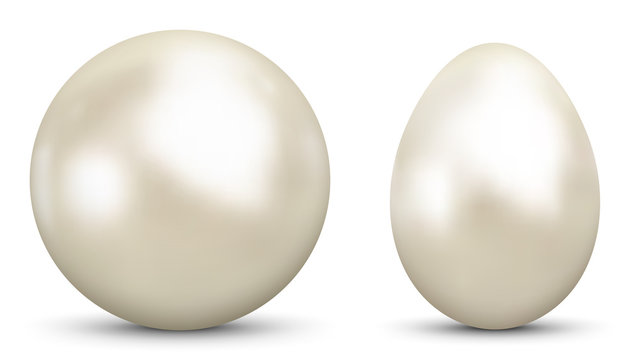 3D Vector Kugel und Ei - Sphäre und Oval isoliert auf reinem Weiß - Weißer Hintergrund - Freigestellt mit Schatten.