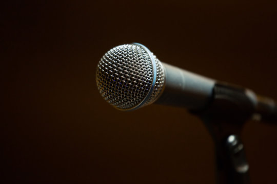 Motivational Speaker Addressing Audience at Conference Event with Microphone