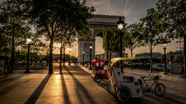 Champs Elysees and the Arc de Triomphe During a Golden Sunset