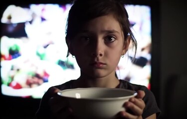 Contrasting Poverty and Abundance: Empty Bowl on Child's Lap with Feast Behind