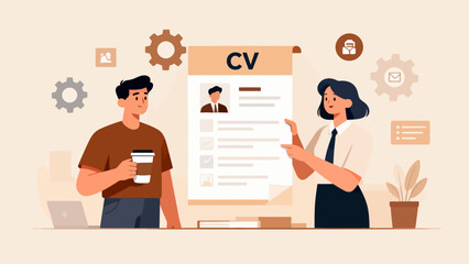 Two people discussing a CV