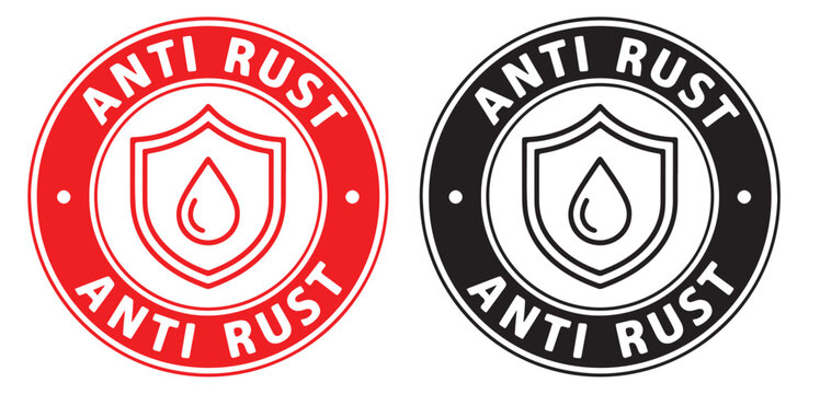 Anti rust protection label badge design, corrosion resistant metal protection shield symbol vector illustration icon