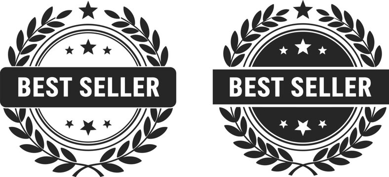 Best seller badges vector, award emblem illustration, laurel wreath design, marketing promotion icons, product recognition symbol, achievement graphic, black minimal artwork set