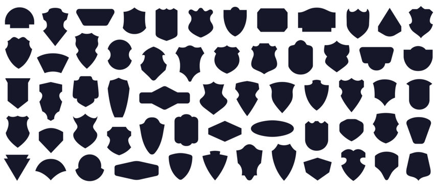 Set of badge shapes. Classic heraldic crest shield collection. Vintage label, banner icons. Police shields silhouettes. Black template for patch, insignias, isolated stock illustration