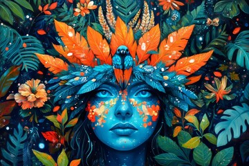 Abstract digital painting embodying sustainability with intertwining leaves glisten with water droplets, AI generated