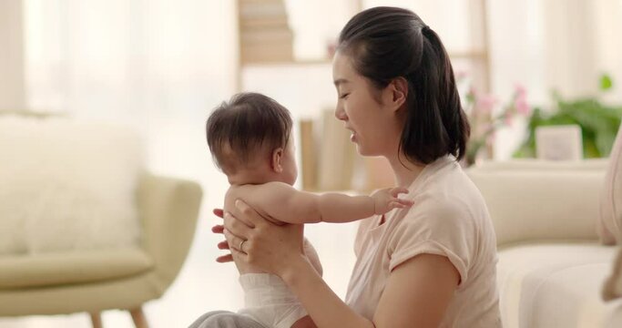Young mom holding baby girl,4K