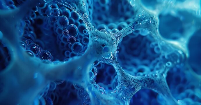 Microscope image of human cells and embryonic stem cells with blue background. Concept Biological Microscopy, Human Cells, Embryonic Stem Cells, Blue Background, Science and Research