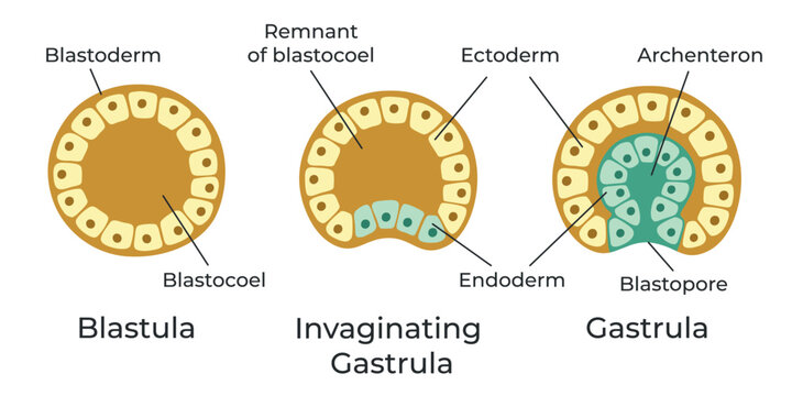 Human embryonic development, or human embryogenesis from zygote to gastrula. Zygote, 2-cell, morula, blastula, gastrula