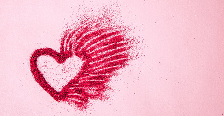 Glitter heart dissolving into pieces on bright background. Valentines day, broken heart and love emergence concept