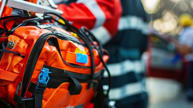 A single individual is carefully placing a first aid kit into a backpack, ensuring that they are wellprepared for any potential medical emergencies that might arise during their journey