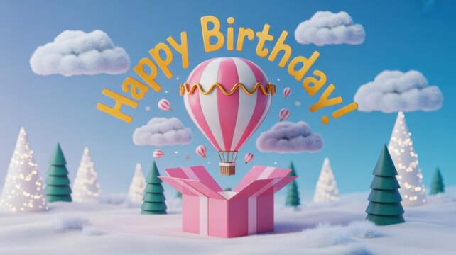 Golden 2026 balloons emerging from a gift box celebrating the new year