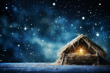 Manger and star of Bethlehem, symbolic of the birth of the King, Jesus Christ our Savior and Messiah.