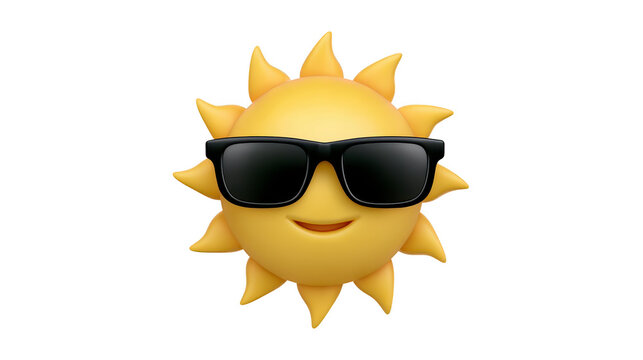 Smiling sun emoji with sunglasses, cheerful and cool, isolated on transparent background, representing summer, happiness, and sunny weather, perfect for fun and positive designs