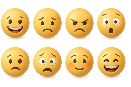 Expressive 3d emotion icons set: happy, sad, angry, surprised, and more smiley faces
