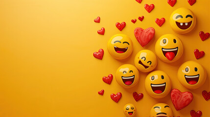 World emoji day 3d banner background. Emoji Celebration 3D Banner Background. World emoji day with a funny emojis. World smile day emojis. Mental health assessment, world mental health day concept.