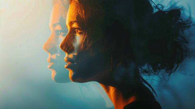 Beneath the Surface: A woman's intense gaze pierces through a mask of peeling, fragmented material, revealing a story of vulnerability, hidden emotions, and a yearning for authenticity.