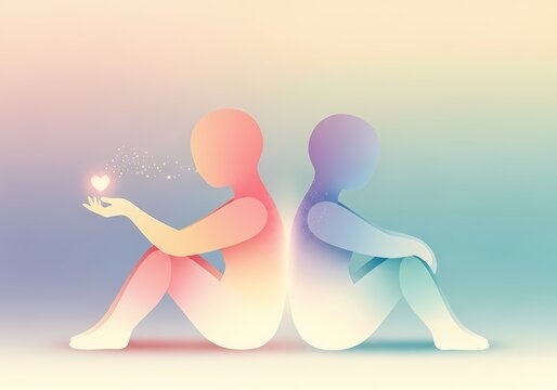 Silhouette of a man and woman in a cloud moving apart in a cosmic space. Concept of separation and emotional distance. Futuristic footage.