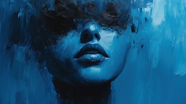 Abstract painting of face with eyes covered in dark blue