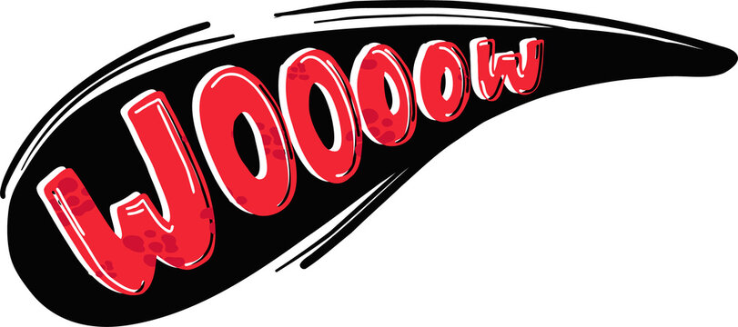 Bold red 'Woooow' text is racing with black brushstroke in flat vector, transparent background