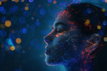 An AI brain with glowing neural connections symbolizes advanced technology, emphasized by a dark blue background.