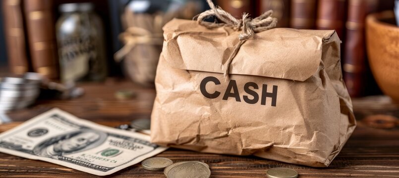 Cash envelope package on table with  cash  text emphasized for increased relevance